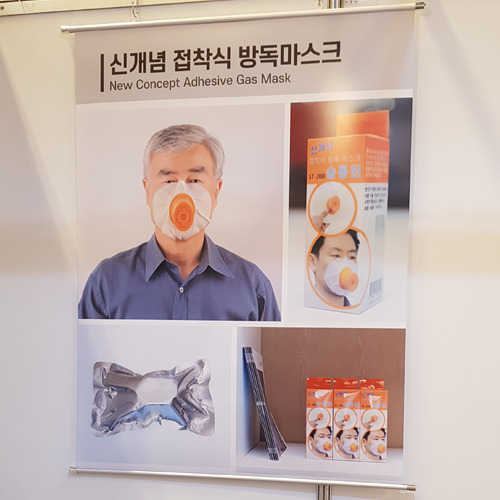 | • Since the transfer metal oxidizer filter that decontaminated CO gas has reduced performance due to moisture, make sure that moisture, such as saliva, does not pass through the filter. • The one-way valve located in the center of the filter container separates the breathing path and allows easy breathing. Strong point 1) Light and small products deliver superior storage and portability • Competitive products are large and heavy, so they can only be kept in small amounts in a storage box, but this product can be kept 18 times more than in the same space. 2)5 kinds of filters, such as transfer metal oxides, filter toxic gas eight times and completely • decontaminate it for at least 15 minutes (see sectional view of the above products and the following performance evaluation). 3)Adhesive gas masks enable quick and convenient wear in case of emergency • Applying a simple method of gluing to the face compared to the complex wearing method of the existing product, it is faster to wear. Problems and improvement details of existing products Problems with existing products 1)The number of gas masks currently stored and stored in multiple use facilities, such as public institutions, companies, schools, subways, and shopping centers, is very small, so there is little preparation for emergencies such as fires. 2)People are under a lot of pressure to buy at a higher price than they need 3)The competitor's gas mask is large and heavy, so it is difficult to store and carry it with you. Due to lack of publicity on how to use the gas mask, it is difficult for the public to wear it. 1)Package specification 2.3X2.3X6.3inch weight 0.24lb enables easy portability and storage of approximately 18x more than traditional products. 2)It is priced between one-half and one-fifth of the price of a competing product to increase purchasing power so that anyone can easily purchase it and keep it as an emergency item. 3)Facial adhesive mask is very simple to use, allowing quick wear in urgent situations with a time of 20 ± 5 seconds. Main performance of product |